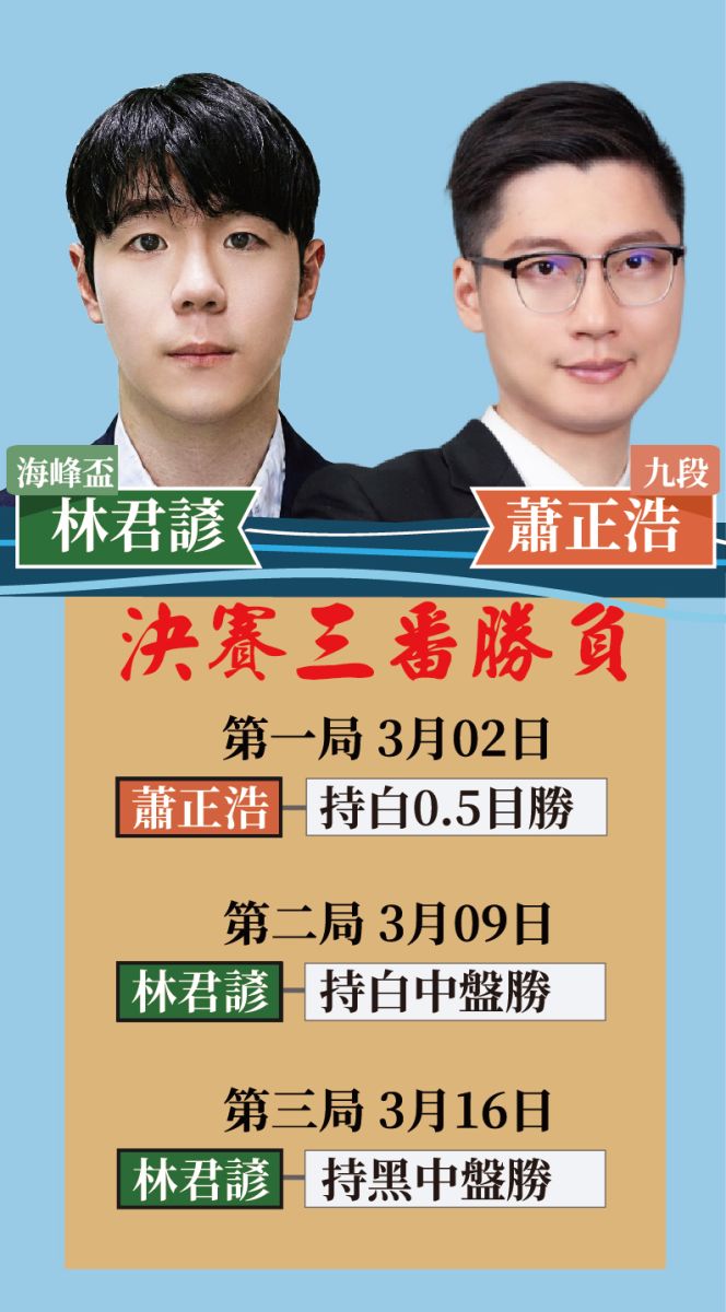 【海峰盃決賽】蕭正浩半目險勝林君諺,三番勝負先拔頭籌!