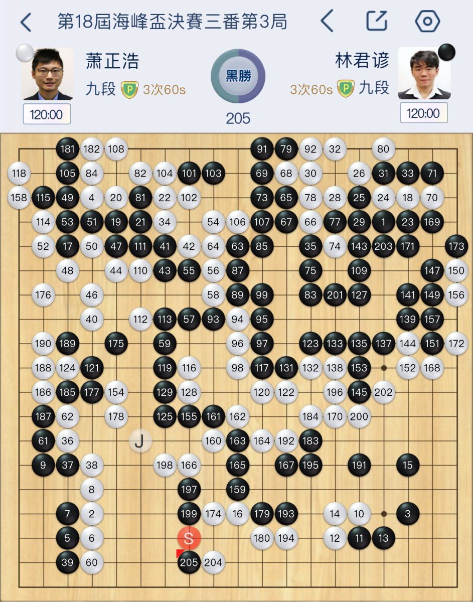 蕭正浩九段 持白0.5目勝 林君諺海峰盃