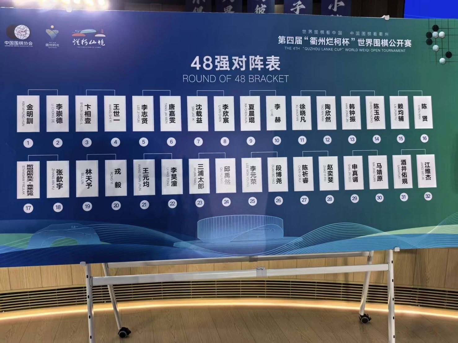2026/04/14 第四屆衢州爛柯杯世界圍棋公開賽本賽48強抽籤結果公告