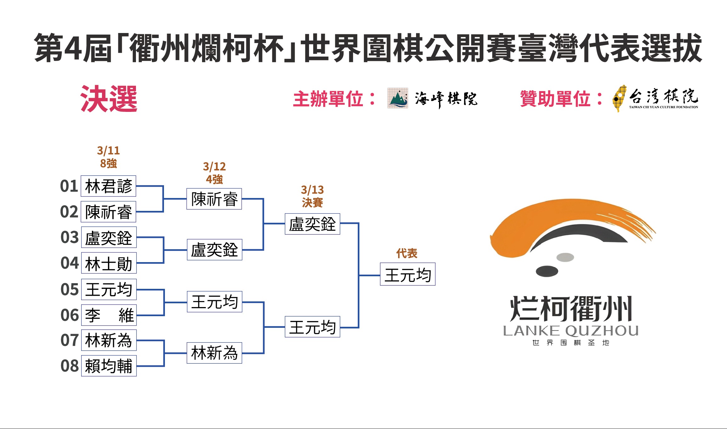 2026/03/13【第4屆「衢州爛柯杯」世界圍棋公開賽臺灣代表選拔賽成績】