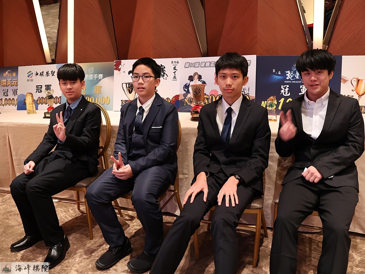 今年新入段職業棋士(左起) : 黃柏人(14歲)、吳君成(12歲)、蔡明叡(15歲)和王柏勛(20歲)。