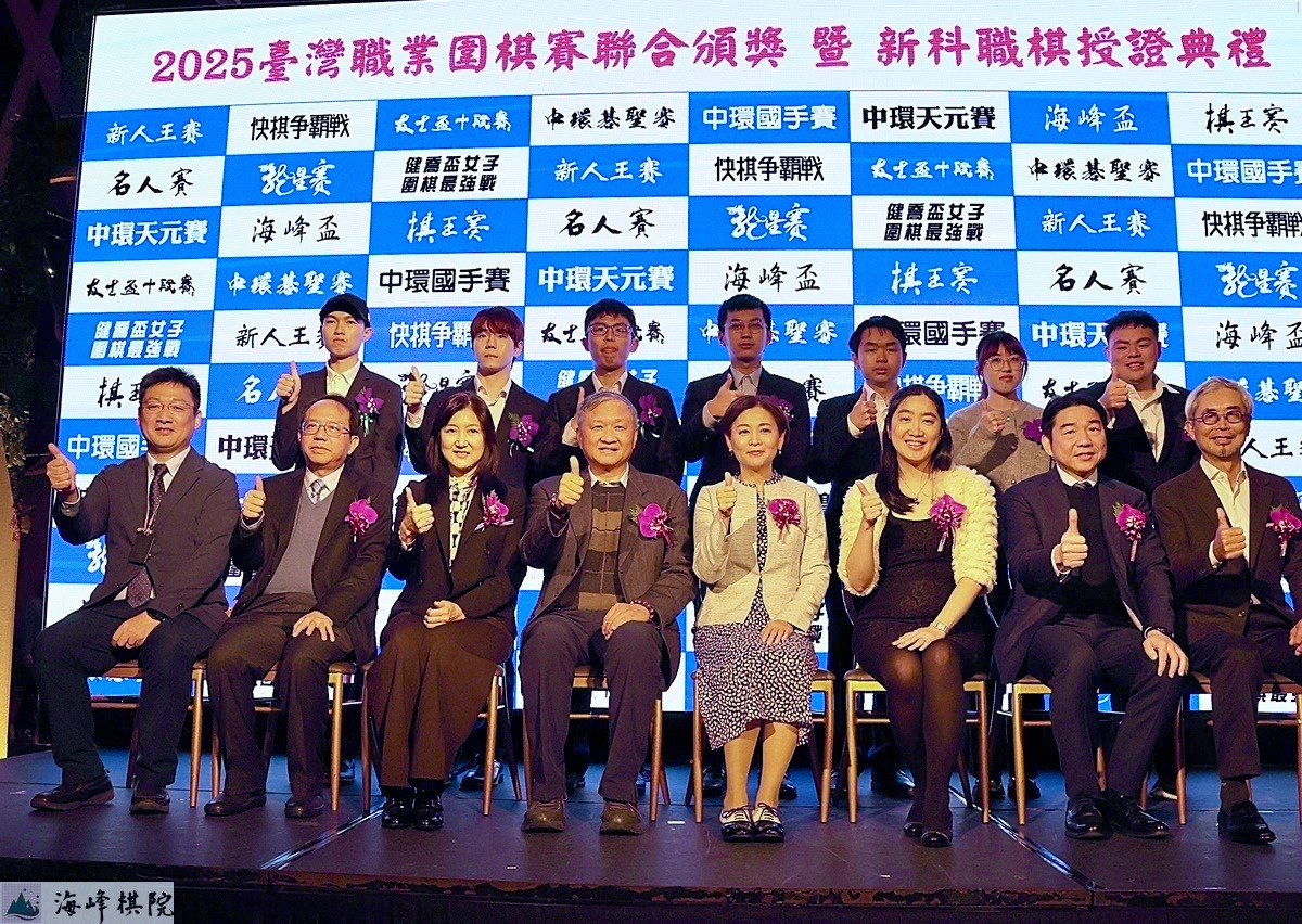 新的一年到來,海峰棋院總結過去一年的職業比賽成績,今1月9日於台北市大直典華舉辦「2025年度台灣職業圍棋賽聯合頒獎暨新科職棋授證典禮」。