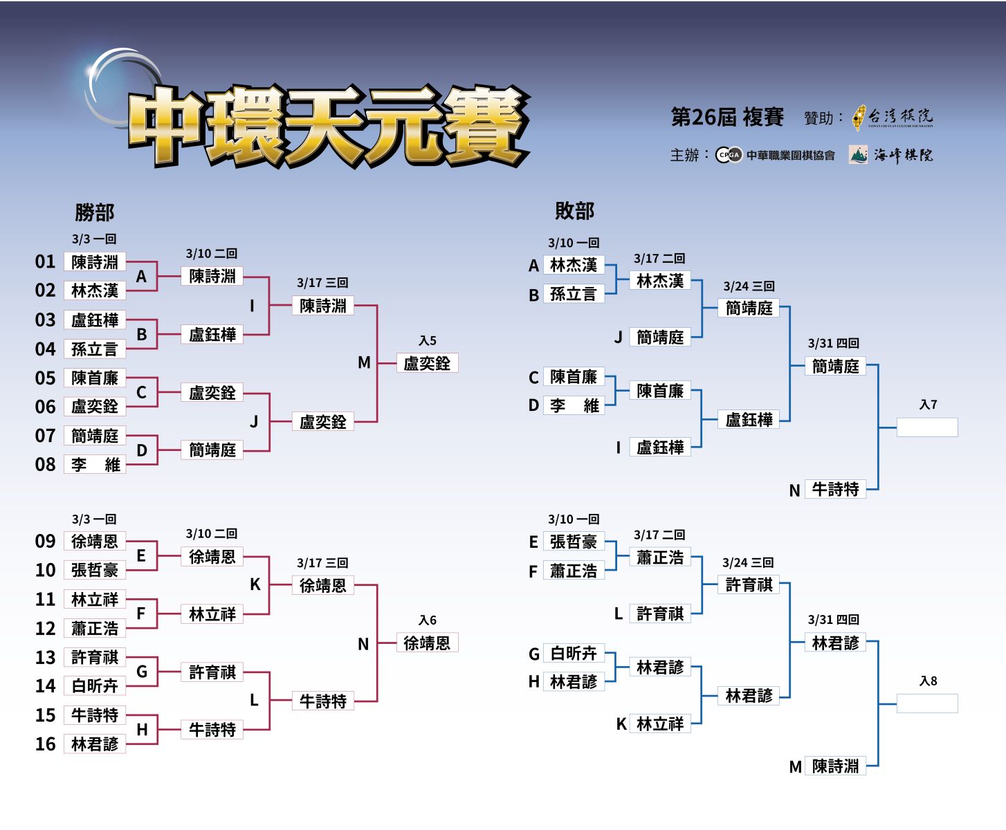 2026/03/24【第26屆中環天元賽複賽敗部三回戰成績】