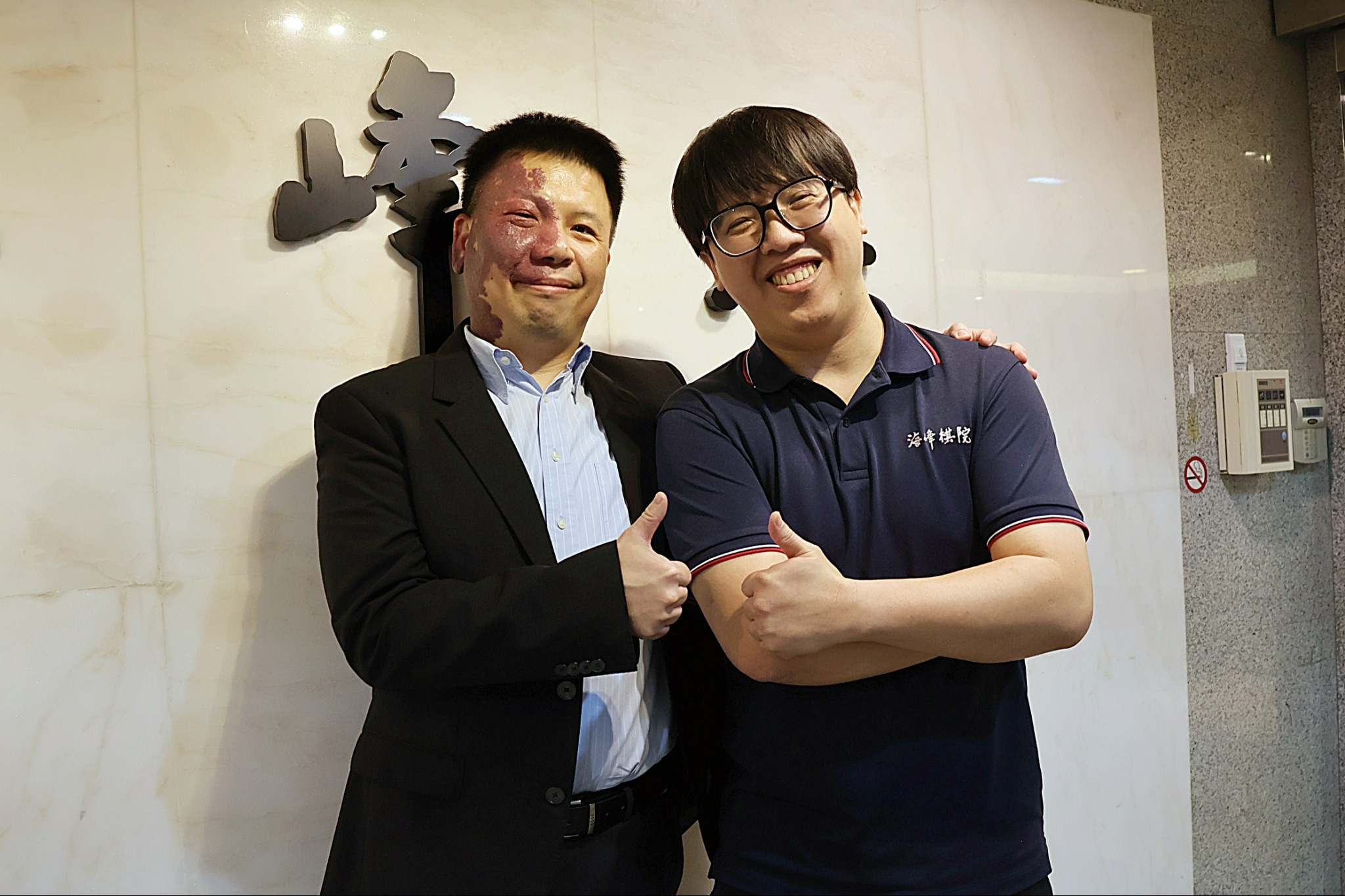 兄弟倆受訪後於棋院門口合影