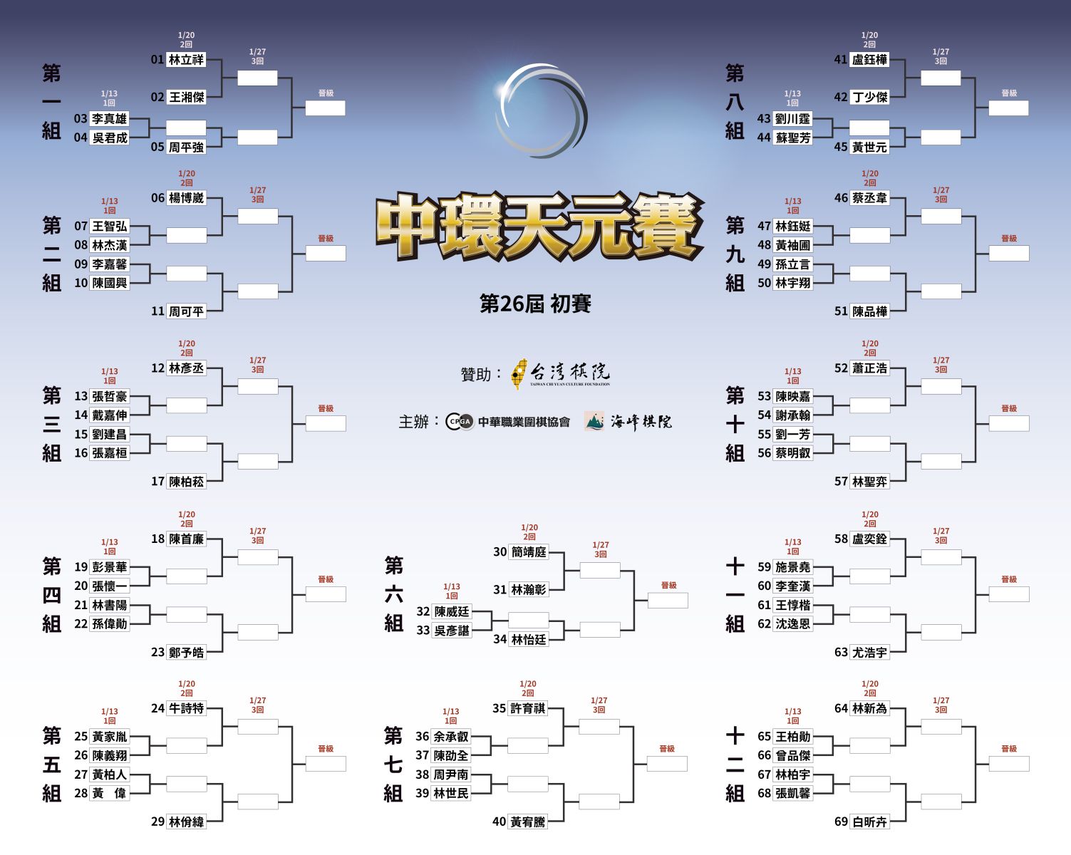 2026/01/07第26屆「中環天元賽」初賽抽籤結果公告
