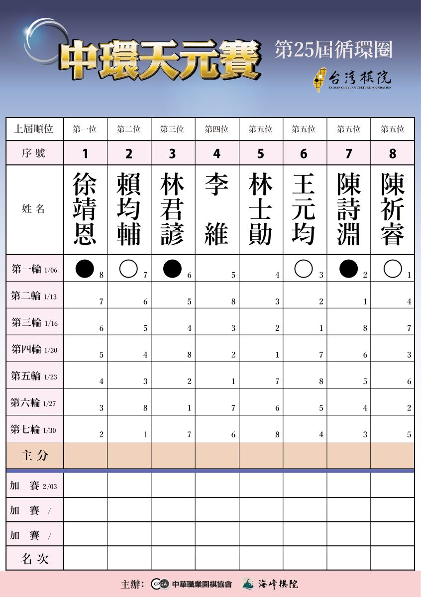 天元循環圈第二輪預計於 1月13日(二) 繼續進行。誰能從循環圈中脫穎而出?敬請大家持續關注。