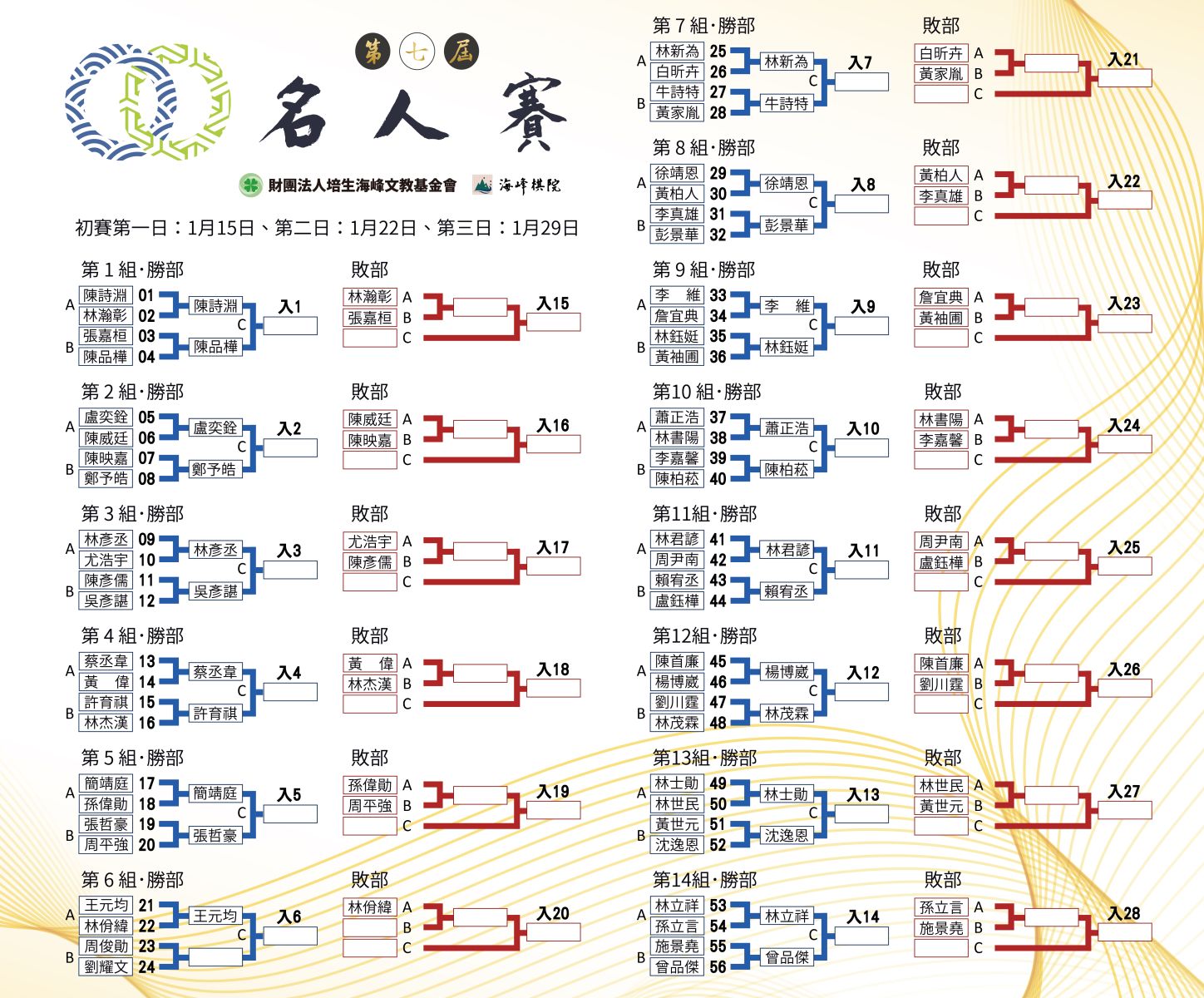 1/22 初賽敗部1回對陣: