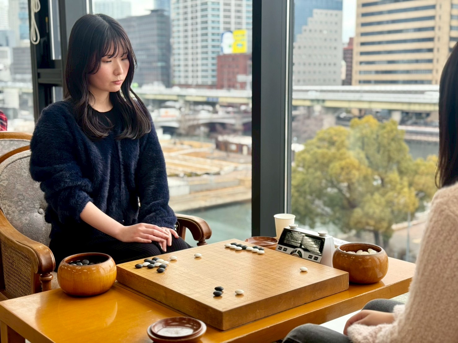 大片落地窗望出去就是大阪街景與河岸風光,陽光灑進來,棋盤都變得特別溫柔。