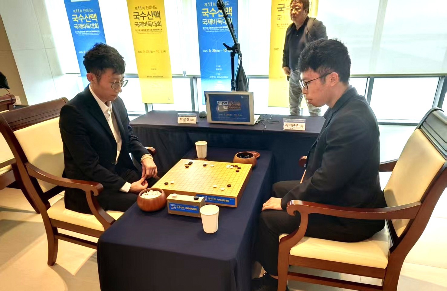 在九月底到十月初之間,很榮幸接到團長任務,我帶著元均和均輔前往韓國參加國手山脈杯!這兩位棋手過去在這項比賽中都是有實績的,元均曾在2018年參賽一路過關斬將進入決賽才輸給朴廷桓九段屆居亞軍。均輔則是去年一路過關斬將最後決賽擊敗世界最強棋手小申獲得冠軍!也表示兩位棋手對這比賽很有緣分。開幕式抽籤均輔抽到韓國的朴常鎮,朴常鎮是韓國年輕棋手。近年來韓國頂尖棋手除了小申外年齡都是偏大的棋手,因此朴常鎮是韓國寄予厚望的棋手。對此本次比賽目標尋求二連霸的均輔肯定是不能大意,以下就來欣賞這盤精彩對決。