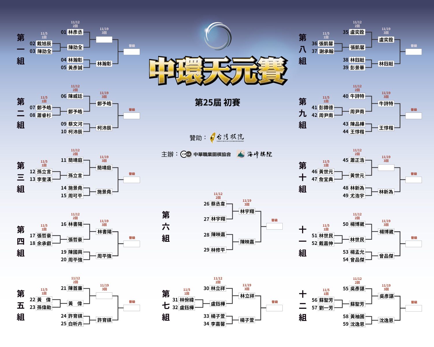 中環天元初賽3回戰將於11/19(三) 繼續舉行。