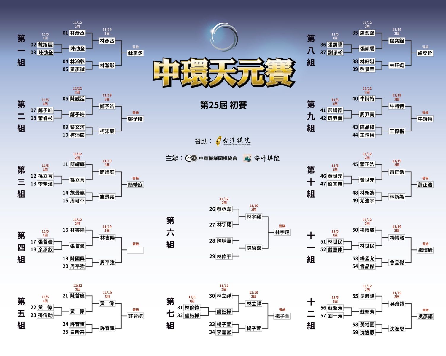 天元初賽二回戰,將於11/12(三)繼續舉行。
