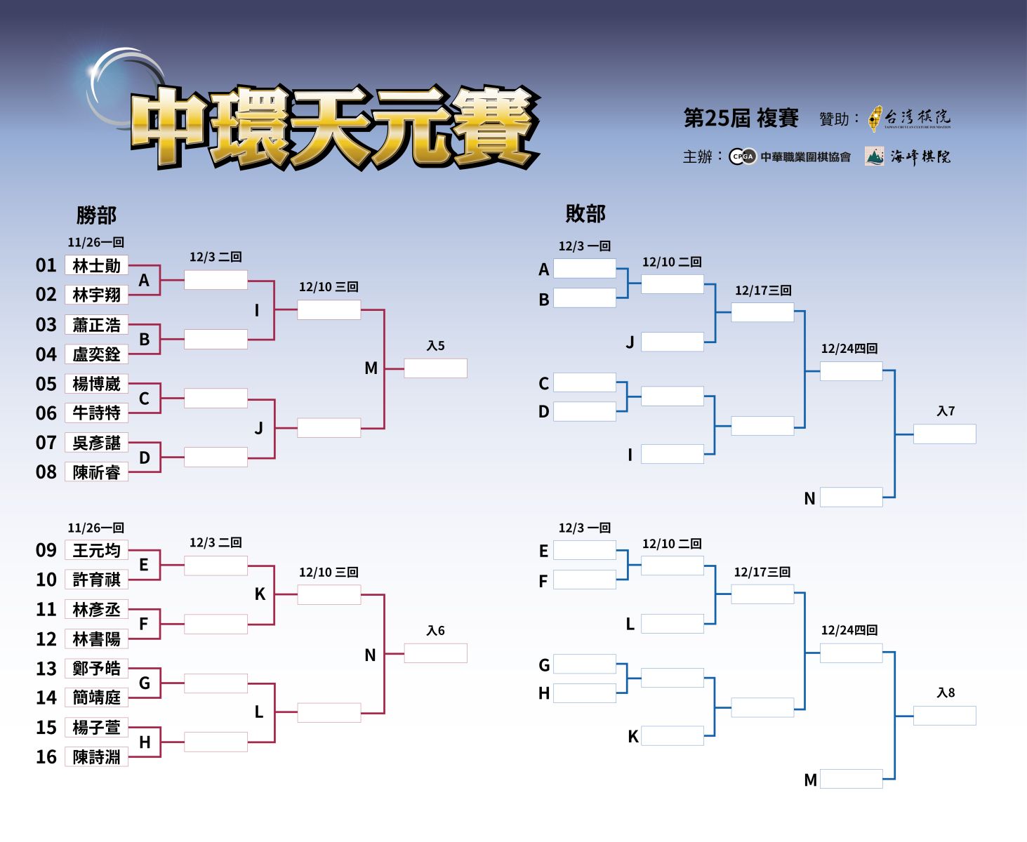 複賽16人對陣,也於今天賽後抽籤出爐。
