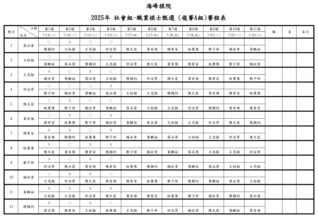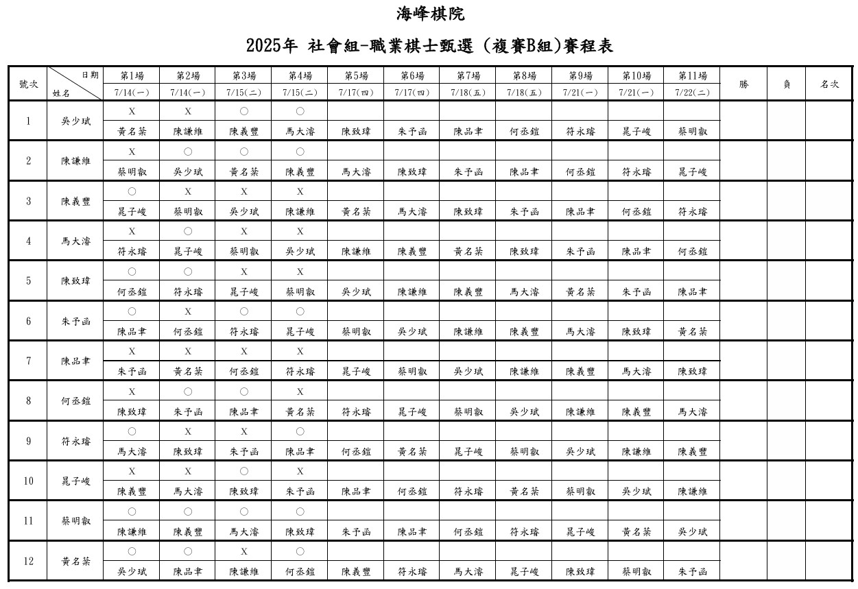 2025/07/15 社會組 職棋甄選複賽 第二日成績