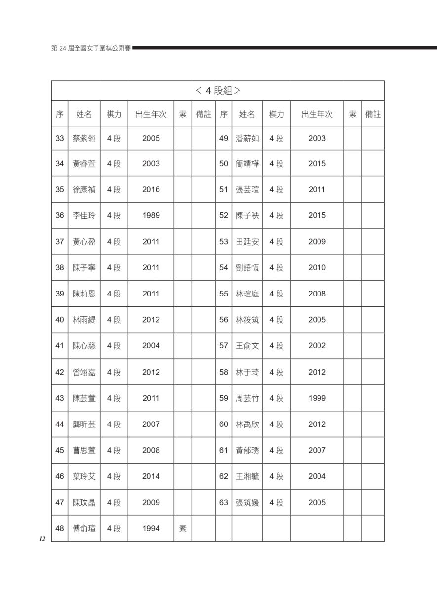 2024/07/10 第24屆全國女子圍棋公開賽 手冊&選手名單公告