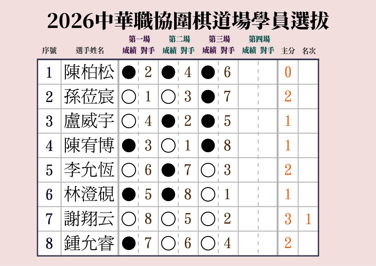 2026/04/13【2026 中華職協圍棋道場選拔賽成績】