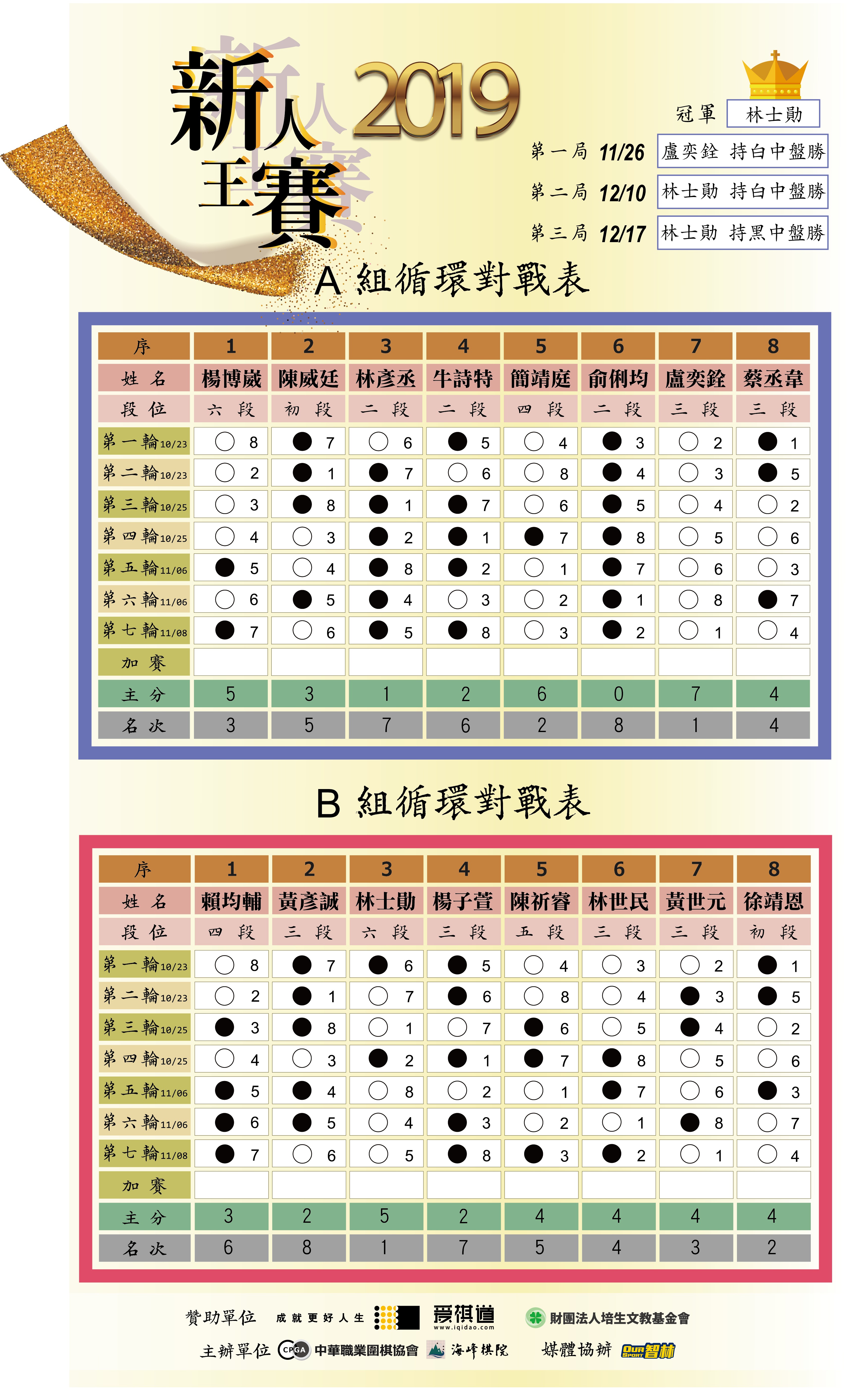 2019新人王賽【決賽與循環圈】 結果