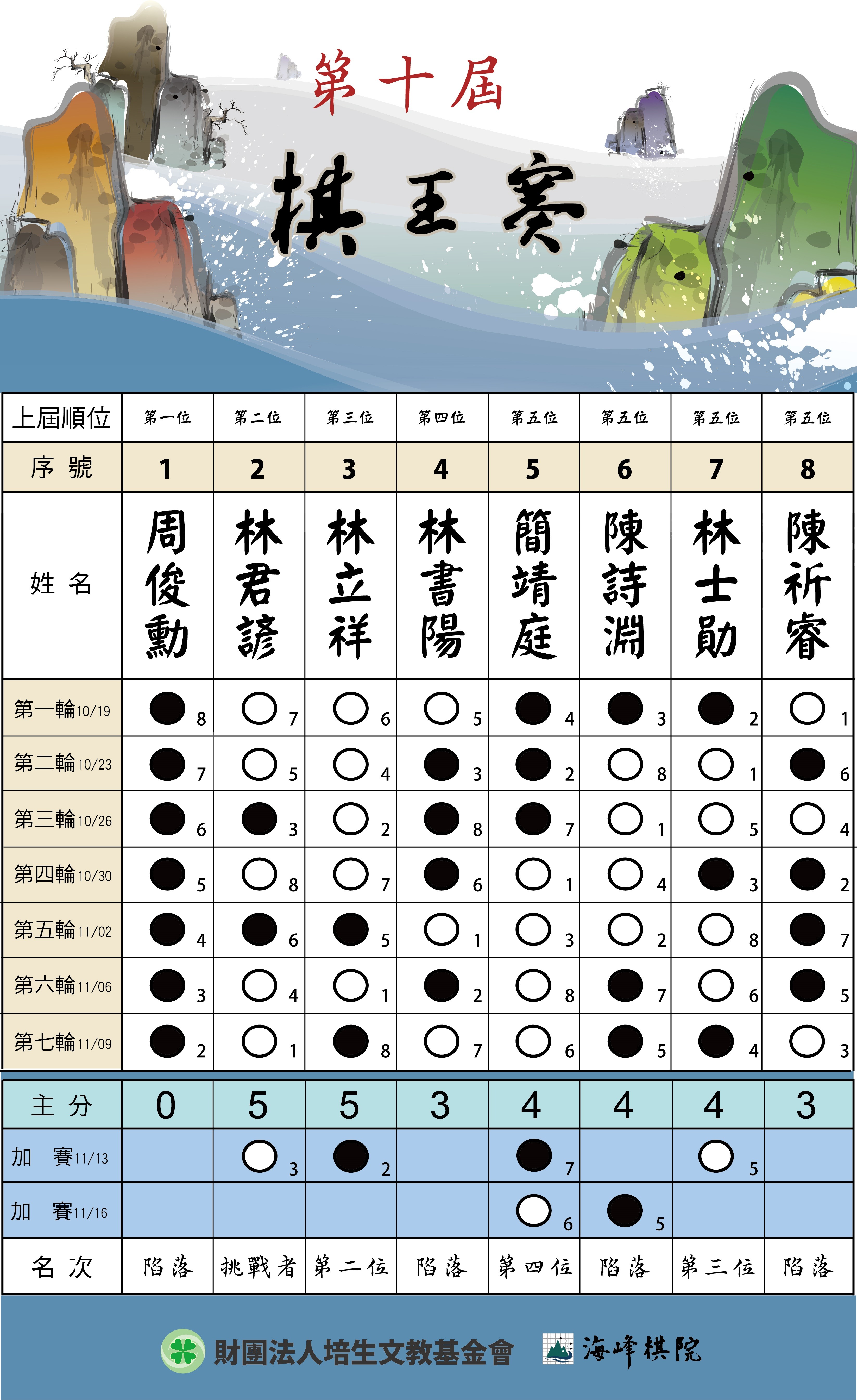 第十屆棋王賽 【循環賽】 結果