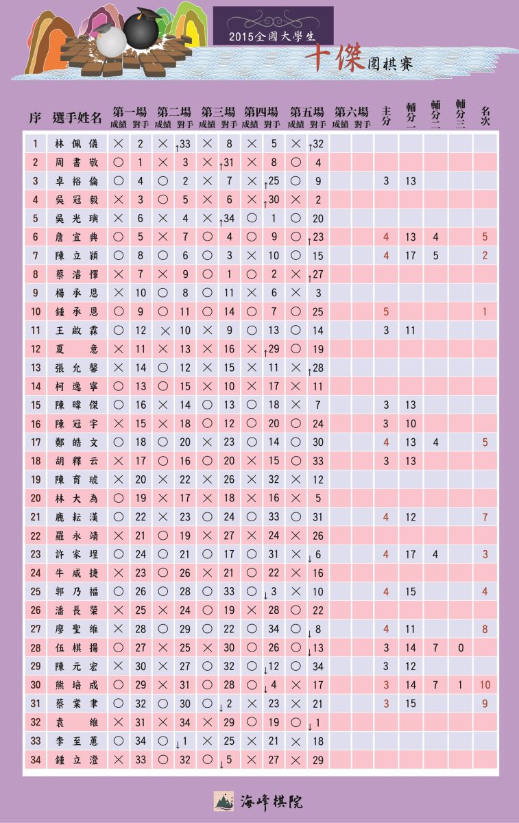 2015/10/04 2015年全國大學生圍棋十傑賽,鍾承恩奪下首傑