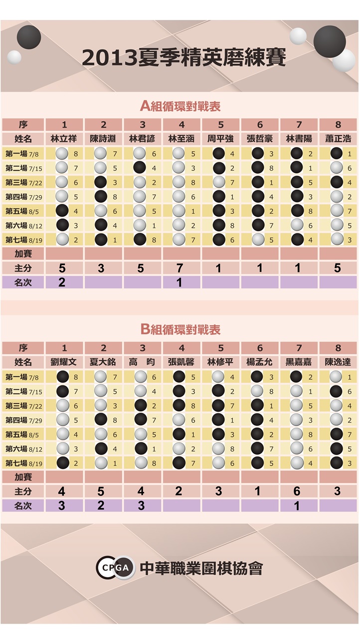 2013/06/17 中華職協 精英棋士夏季磨練賽 比賽結果