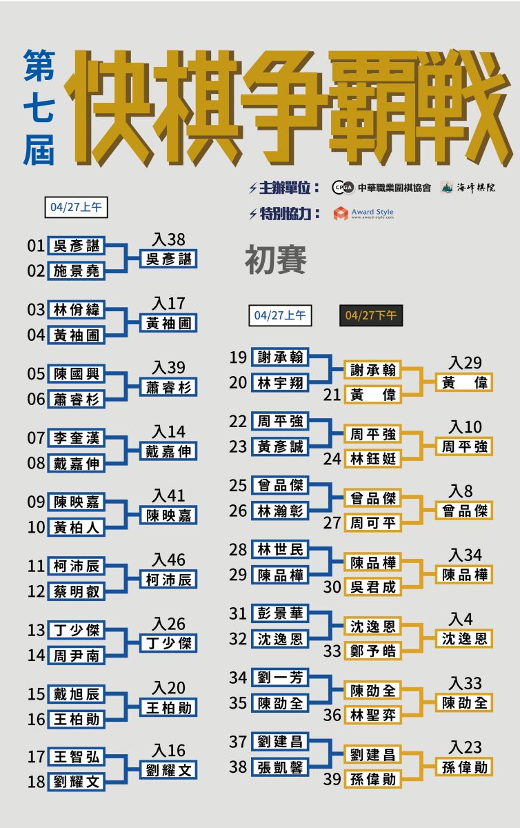 2026/04/27【第7屆快棋爭霸戰初賽成績:16名入圍者獲勝晉級,本賽48強名單誕生!】