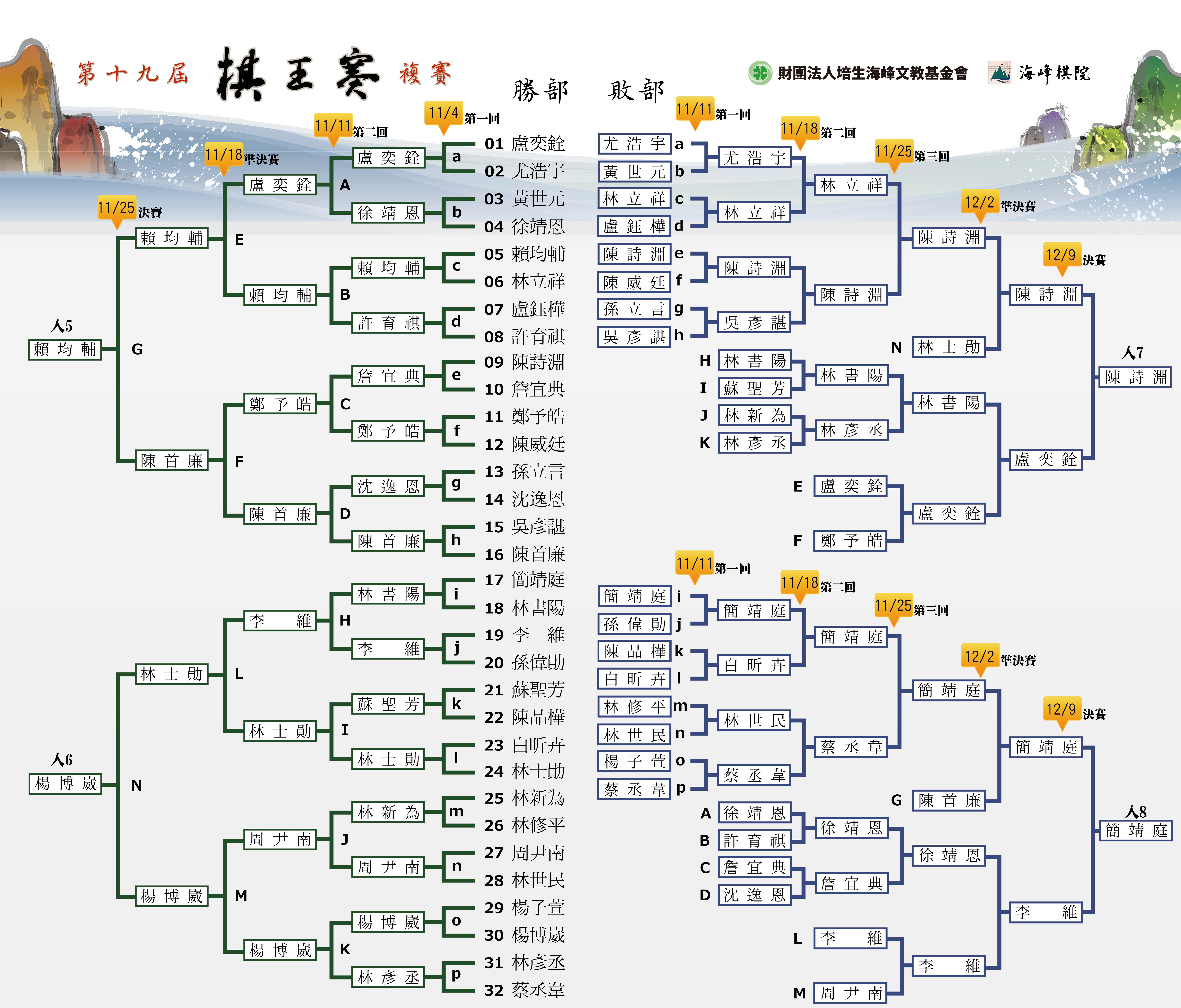第十九屆棋王賽 【複賽】棋譜 & 結果