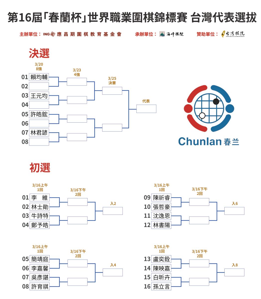2026/03/12 第16屆春蘭杯世界職業圍棋錦標賽 台灣代表選拔抽籤結果