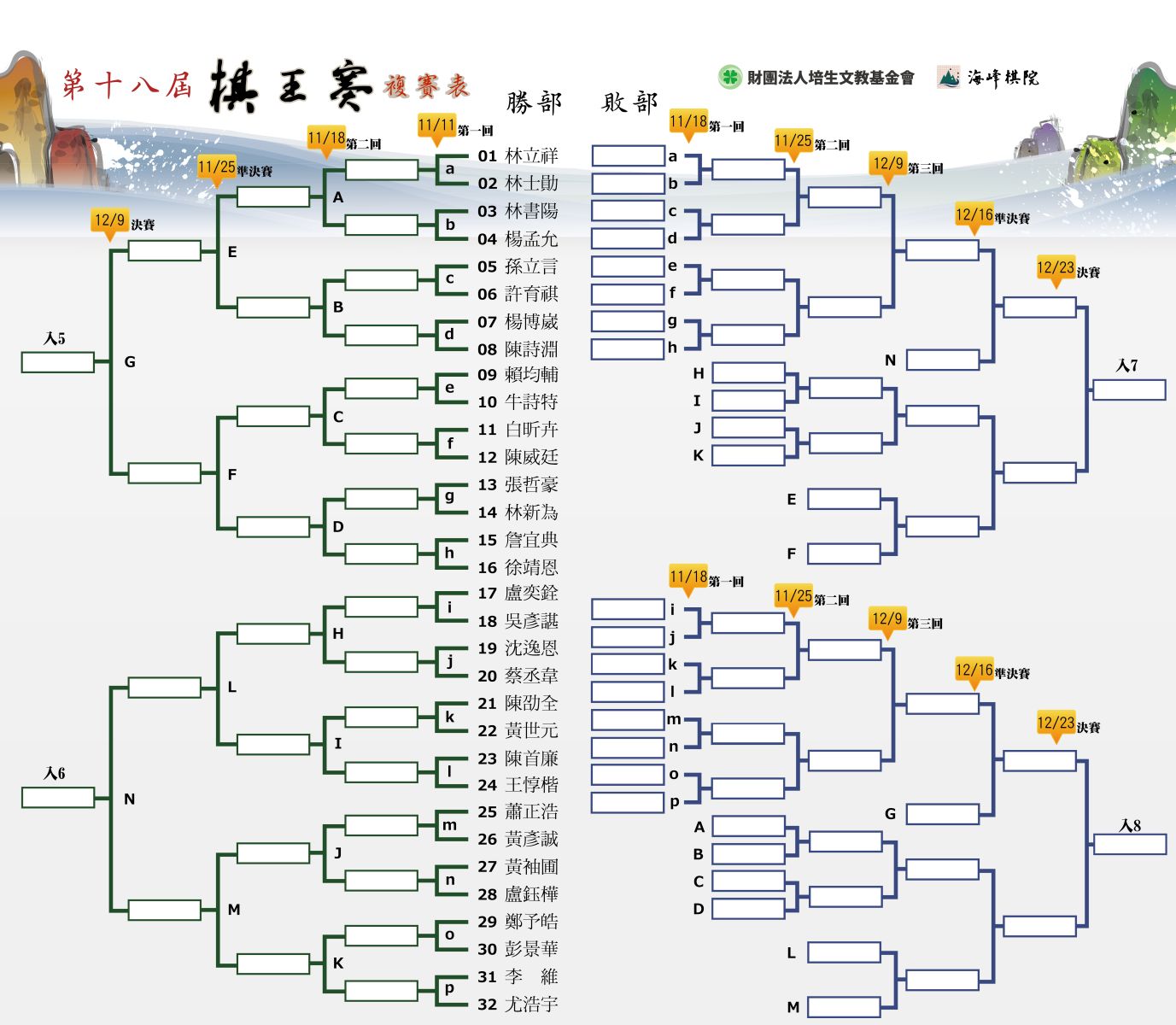 2024/10/16 第18屆棋王賽複賽 抽籤結果公告