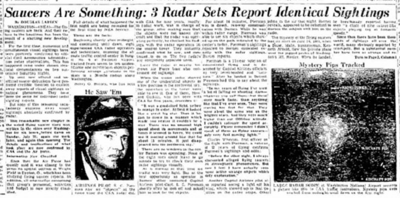 當年美國媒體對於UFO在1952年7月造訪華盛頓的報導。(翻攝網路)