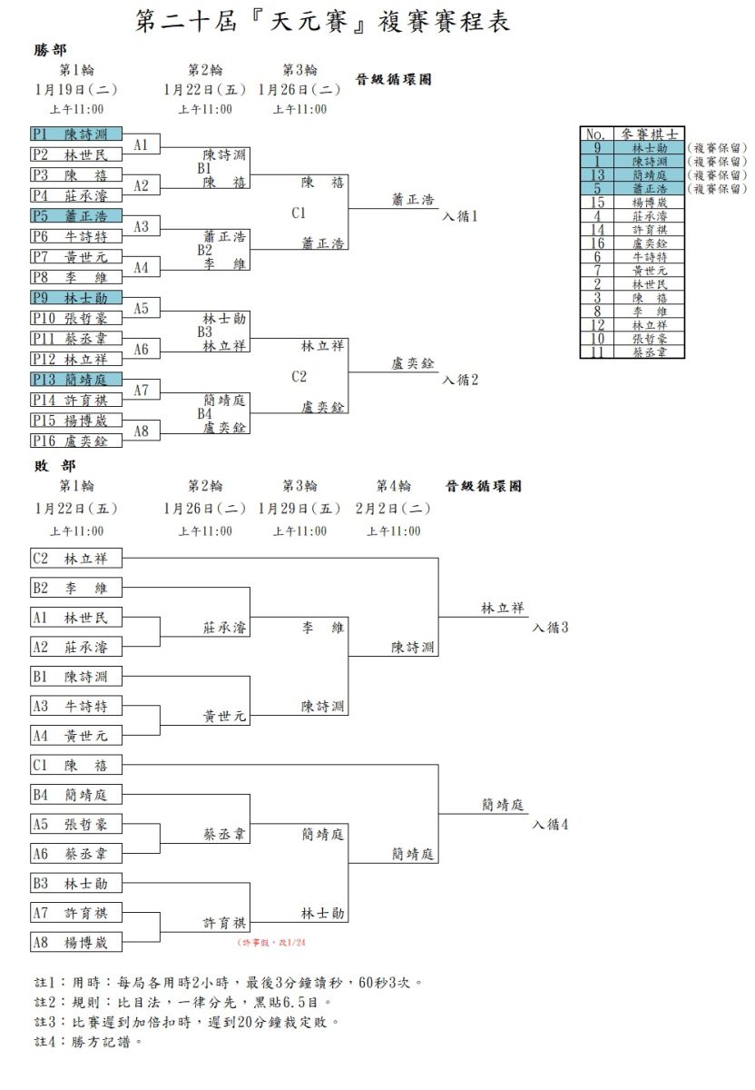 2021/02/02第二十屆天元賽複賽敗部第四輪成績