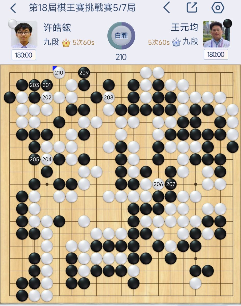賽後訪問中,棋王許皓鋐坦言本局過程艱辛:「這盤從中後盤開始就覺得實空不太夠,後面對手官子感覺一直在虧,到最後一刻我都沒有把握自己能贏。」他透露,直到第208手卡到之後,才意識到自己有機會以半目之差獲勝。