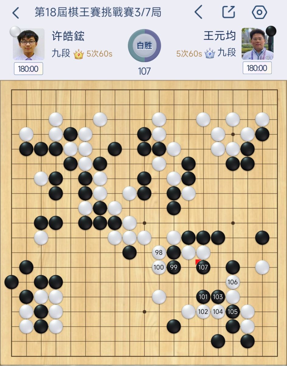 然而,面對王元均在 101至105手 突如其來的「點頂斷」變招,許皓鋐雖感到不解,卻能冷靜應對。