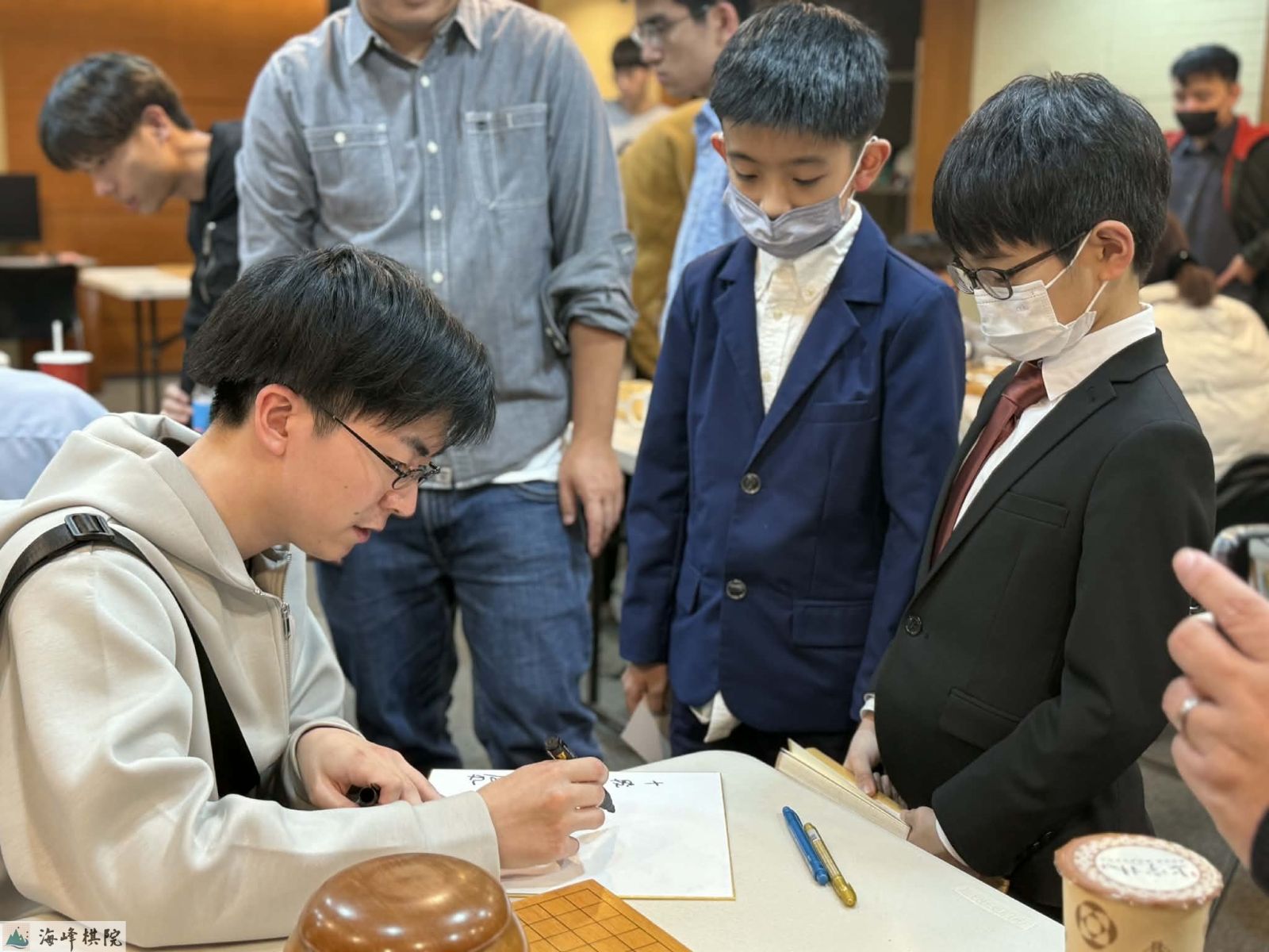 小棋士們請芝野虎丸老師簽名中